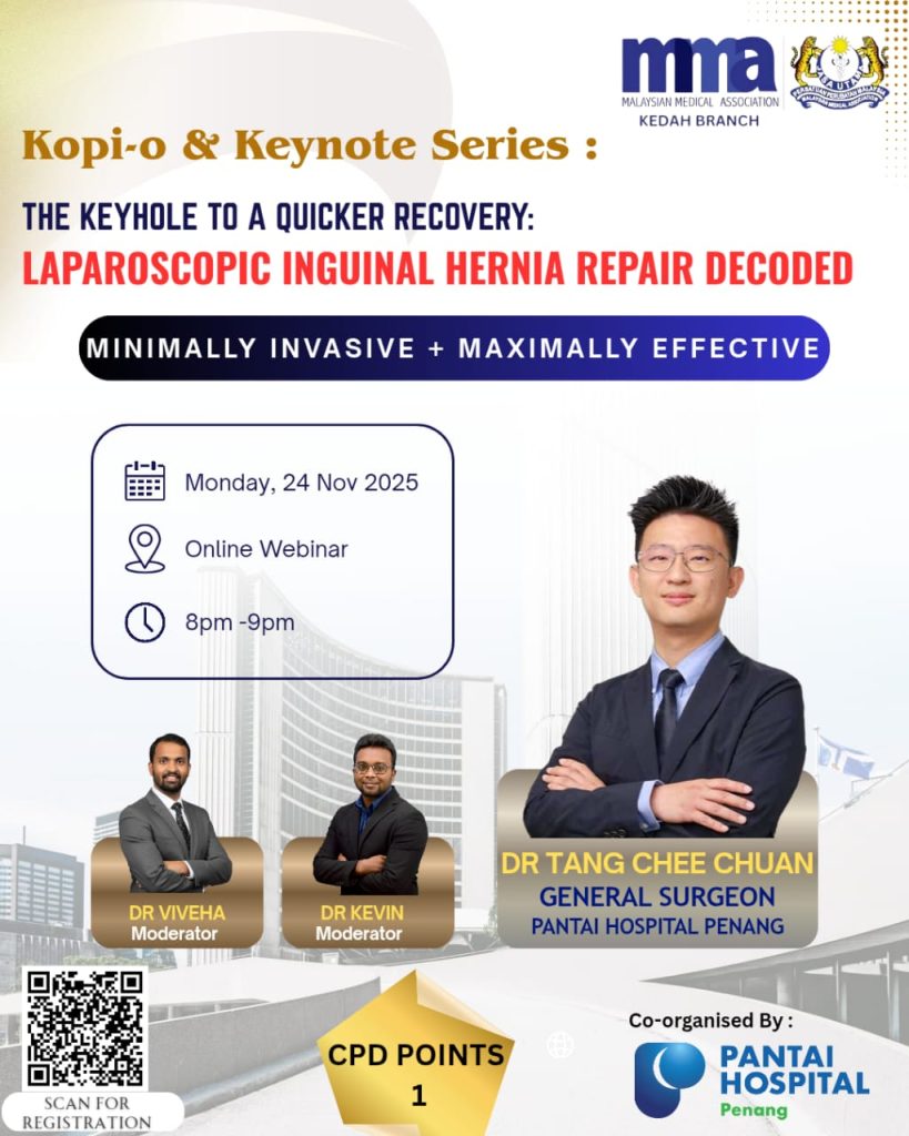 Join us for the next installment of the “Kopi-O and Keynote series” , where we’ll demystify the topic in:  The Keyhole to a Quicker Recovery: Laparoscopic Inguinal Hernia Repair Decoded .”