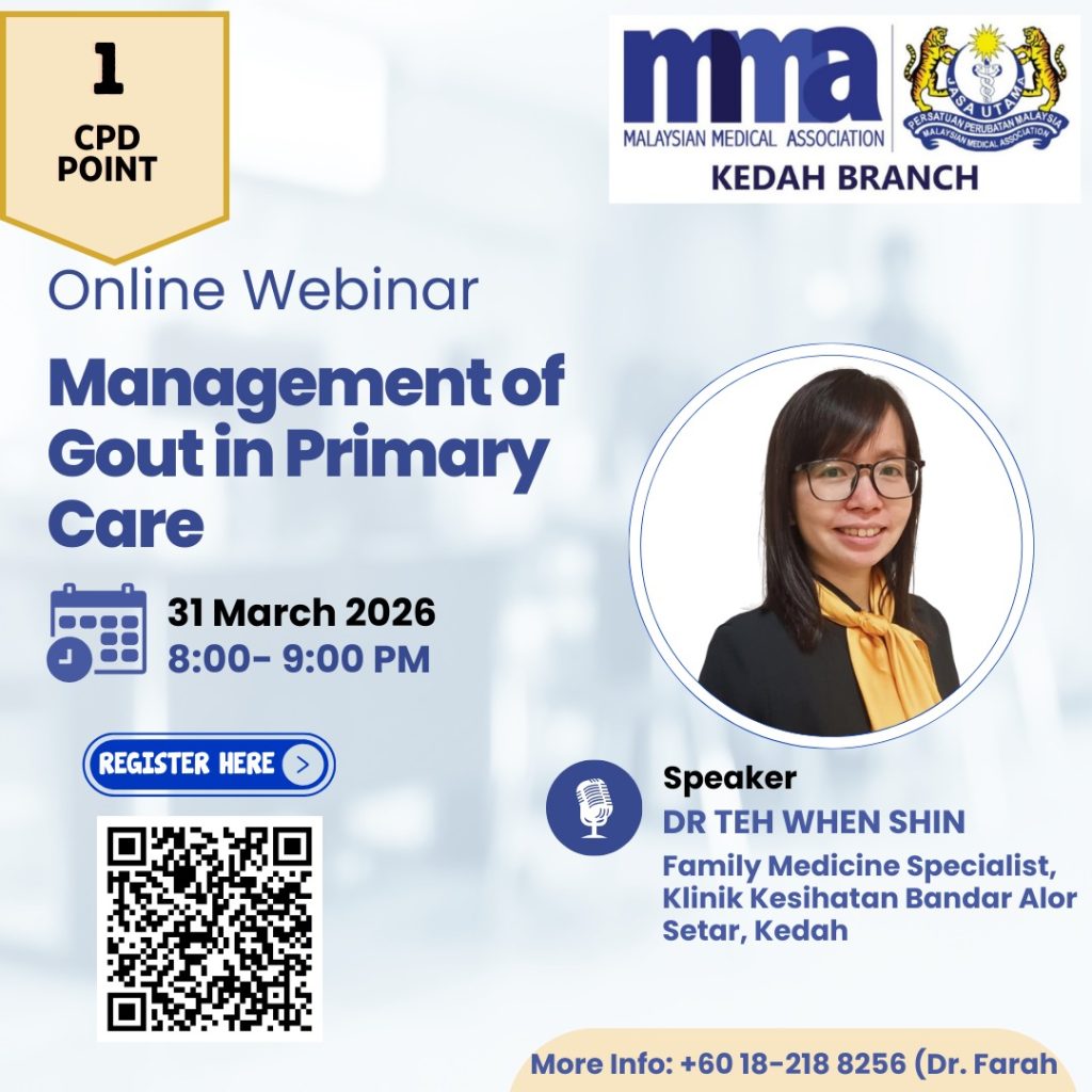 The Malaysian Medical Association (MMA) Kedah Branch cordially invites you to join our upcoming online webinar: