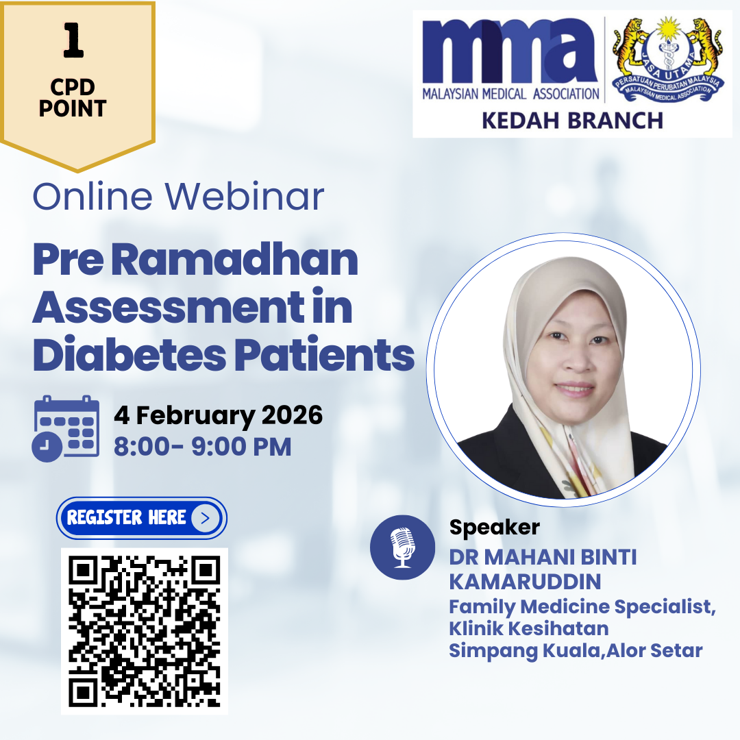 The Malaysian Medical Association (MMA) Kedah Branch is pleased to invite you to an Online Webinar as follows: